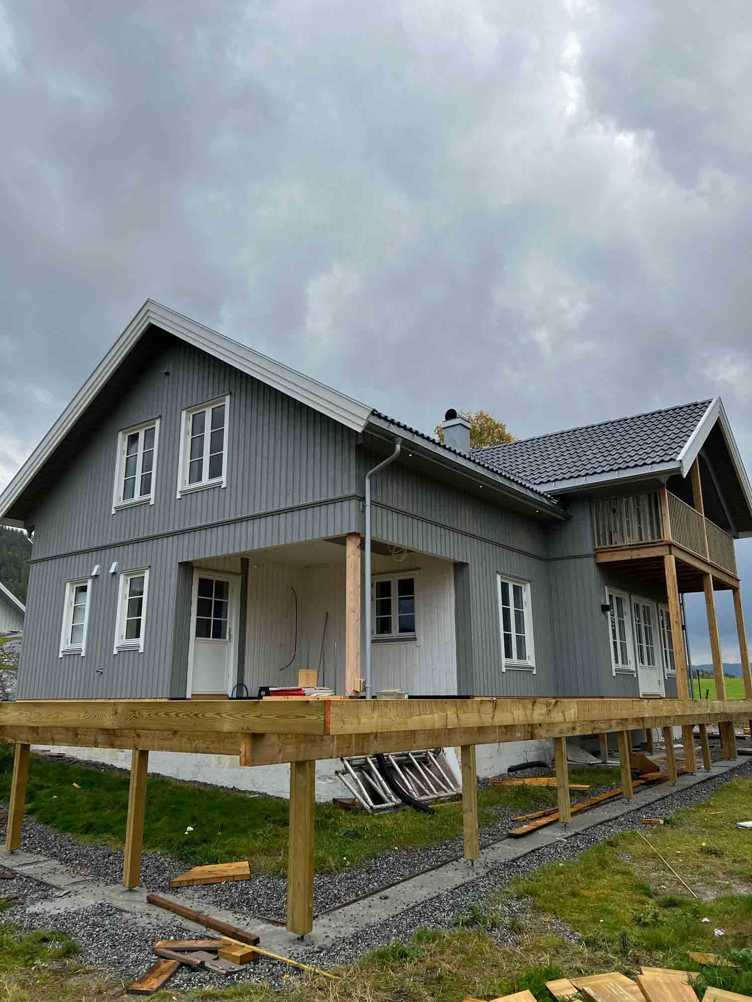Tilbygg på 135 kvm, som består av 3 plan. Terrasse i 1. og 2. etg. ferdigstilt utvendig og innvendig.